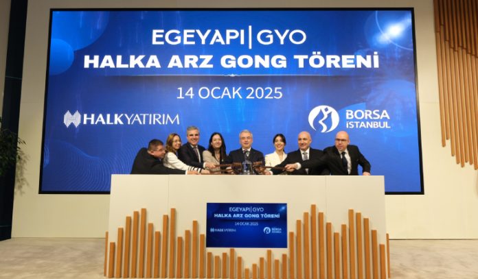 Toplam tahsisat tutarının 1,75 katı büyüklüğünde talep gören EgeYapı Avrupa GYO hisseleri Borsa İstanbul’da yapılan gong töreni sonrası işlem görmeye başladı. Halk Yatırım liderliğinde gerçekleştirilen halka arzın büyüklüğü 918 milyon TL olarak gerçekleşti.
