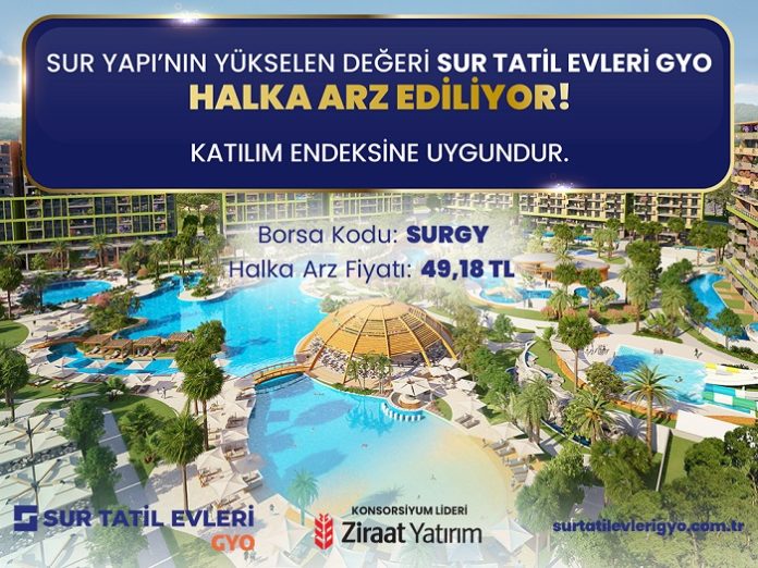 Sur Tatil Evleri GYO, 14 Aralık Perşembe günü Borsa İstanbul’da SURGY koduyla işlem görmeye hazırlanıyor.